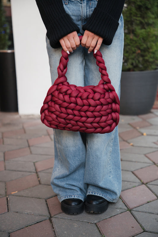 Handmade Burgundy Chunky Handwoven Bag